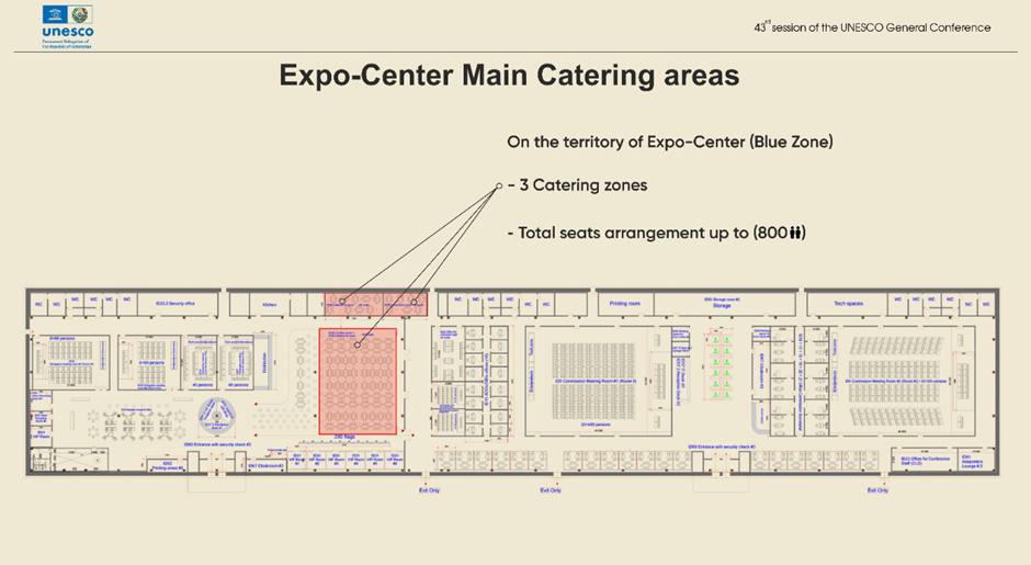 Cafeterias, restaurants, and refreshment points available at the Conference and Expo Centers